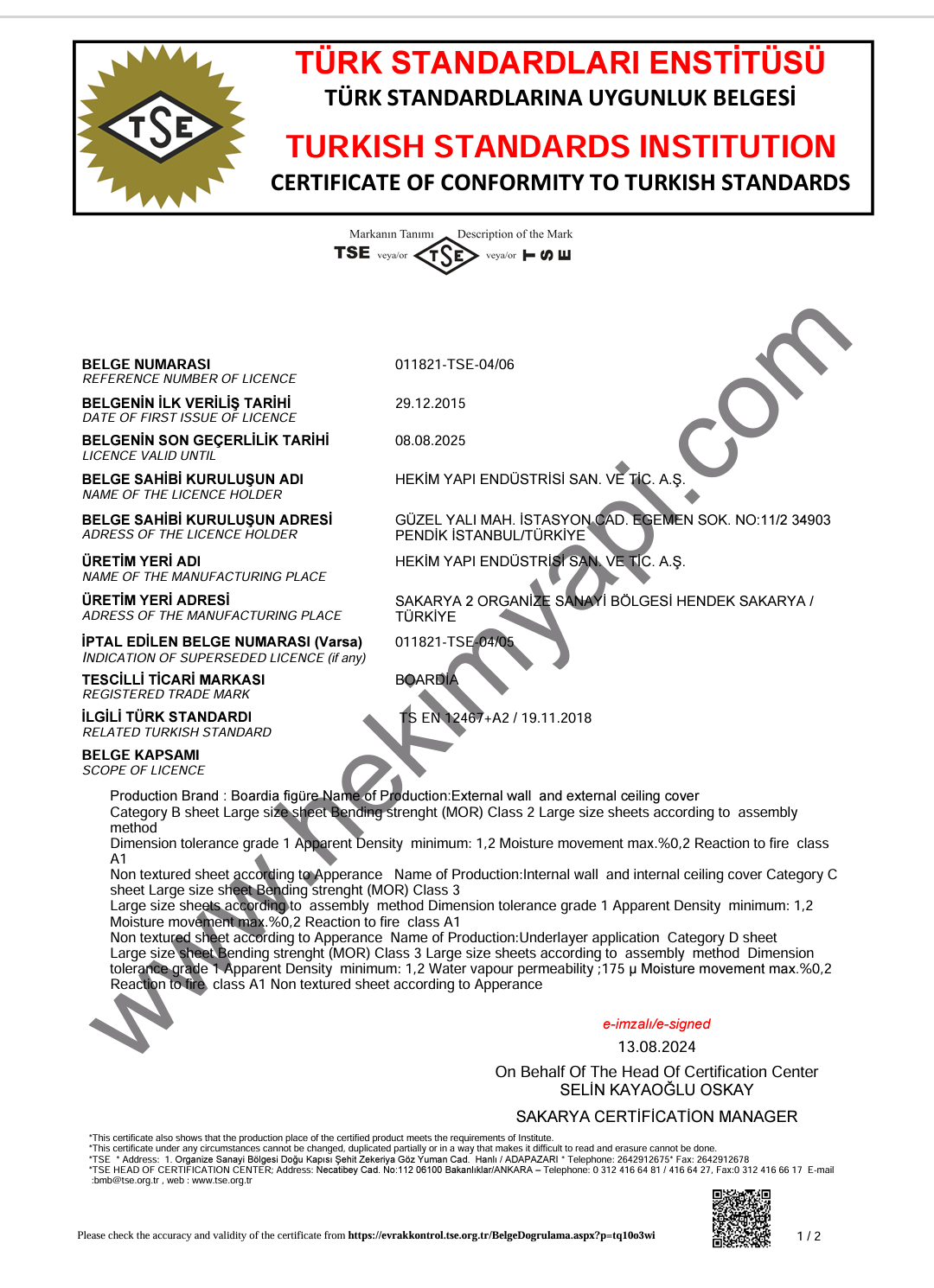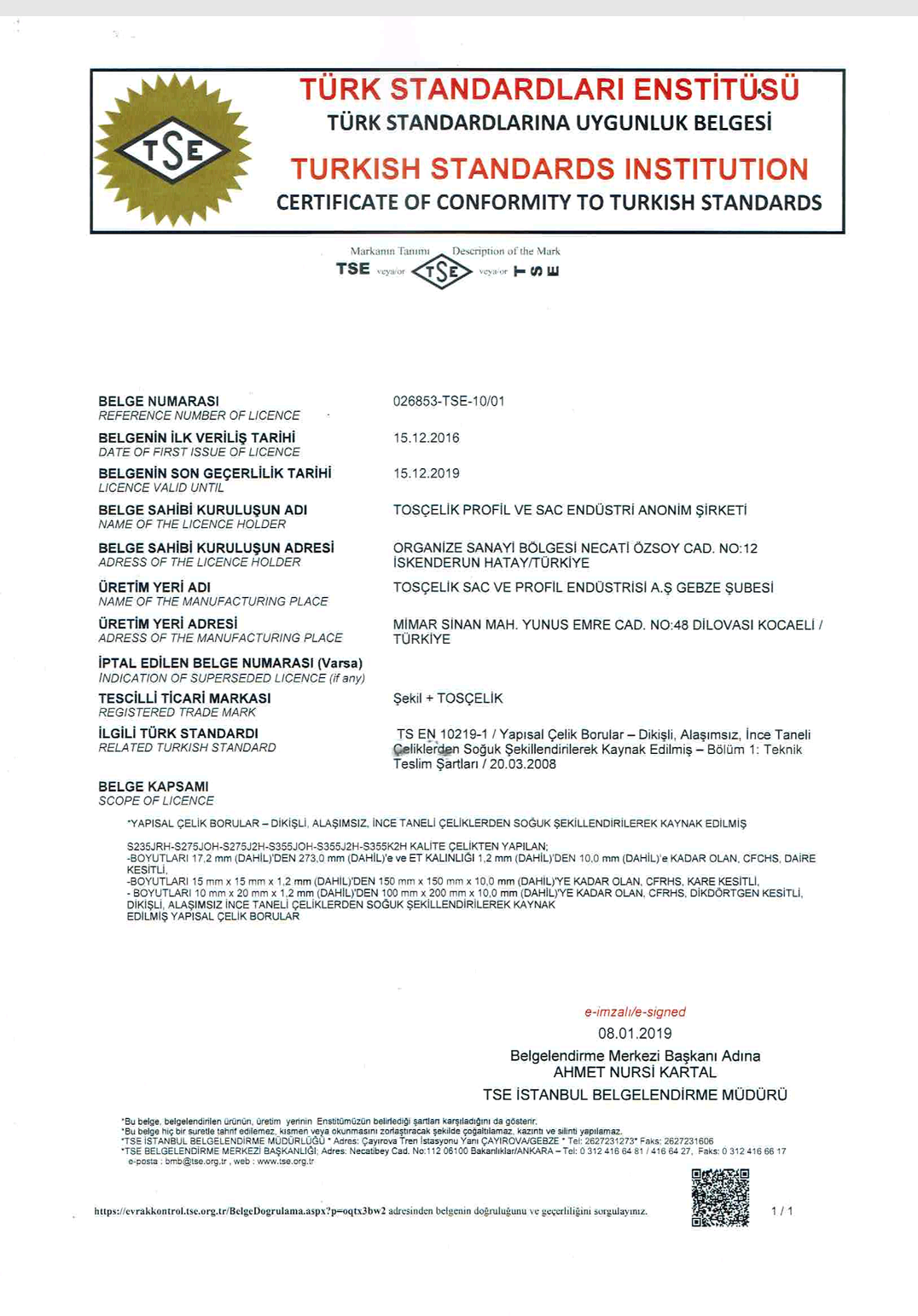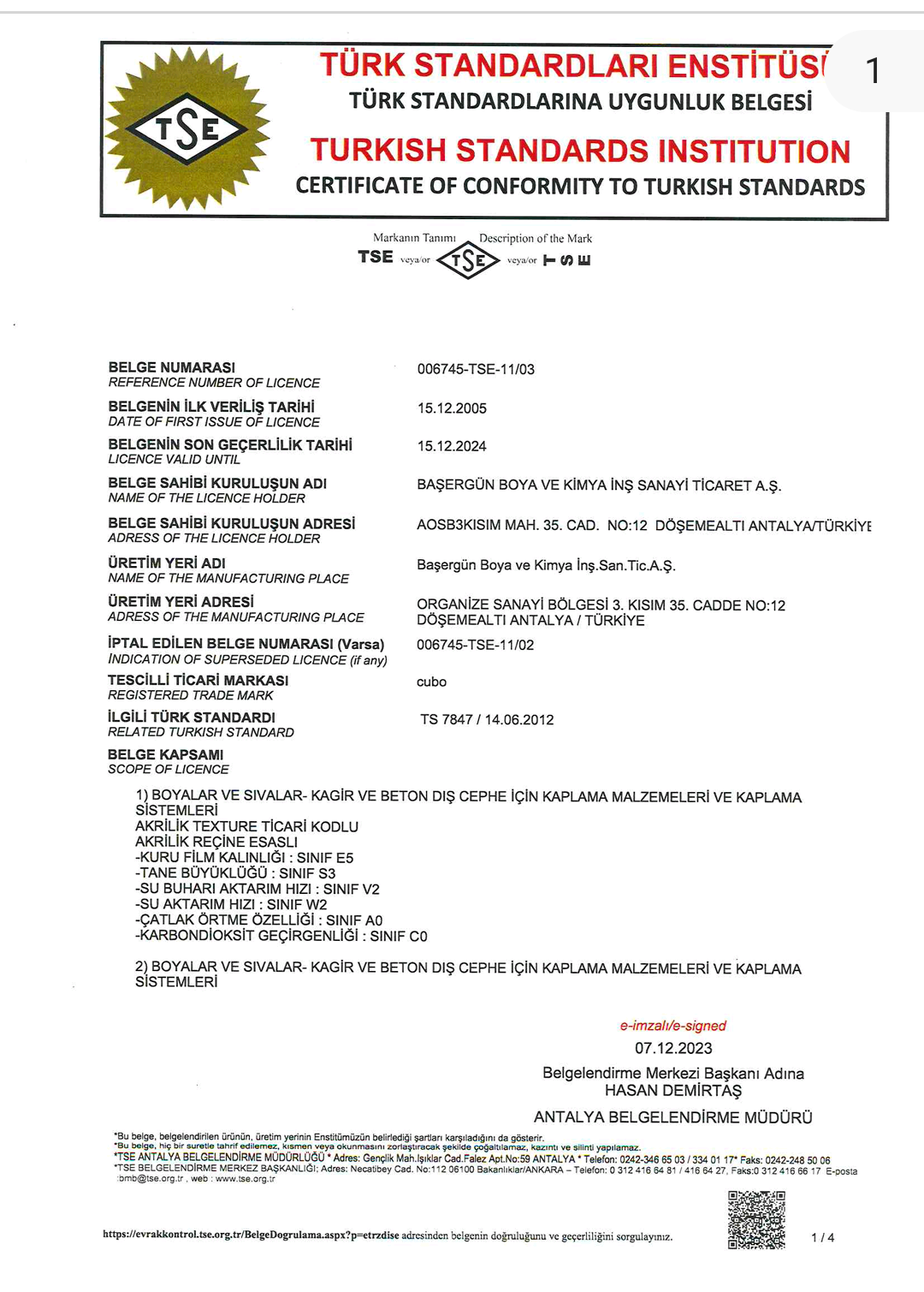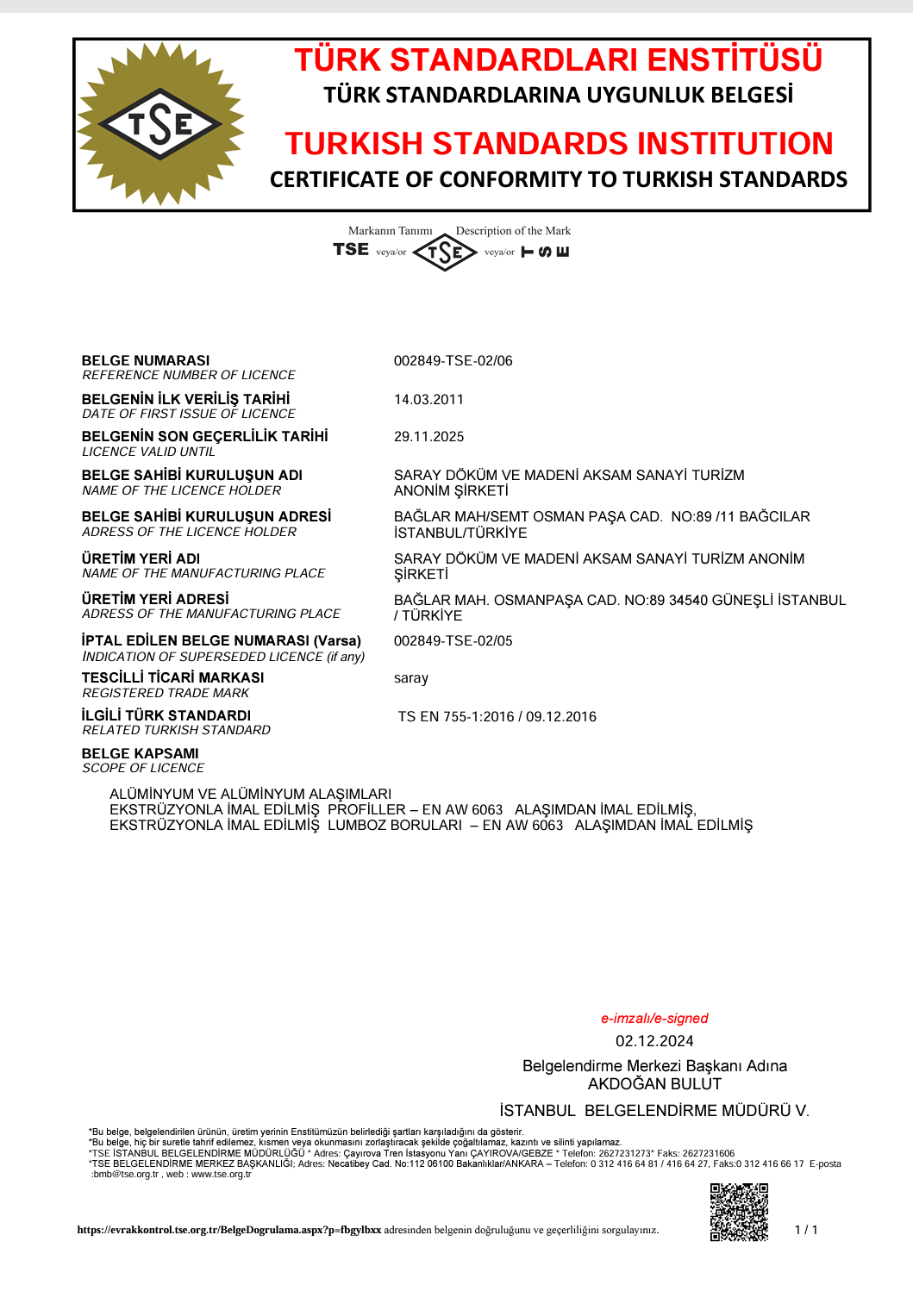 Kiosk büfe yapımında kullanılan malzemelerin TSE belgeleri