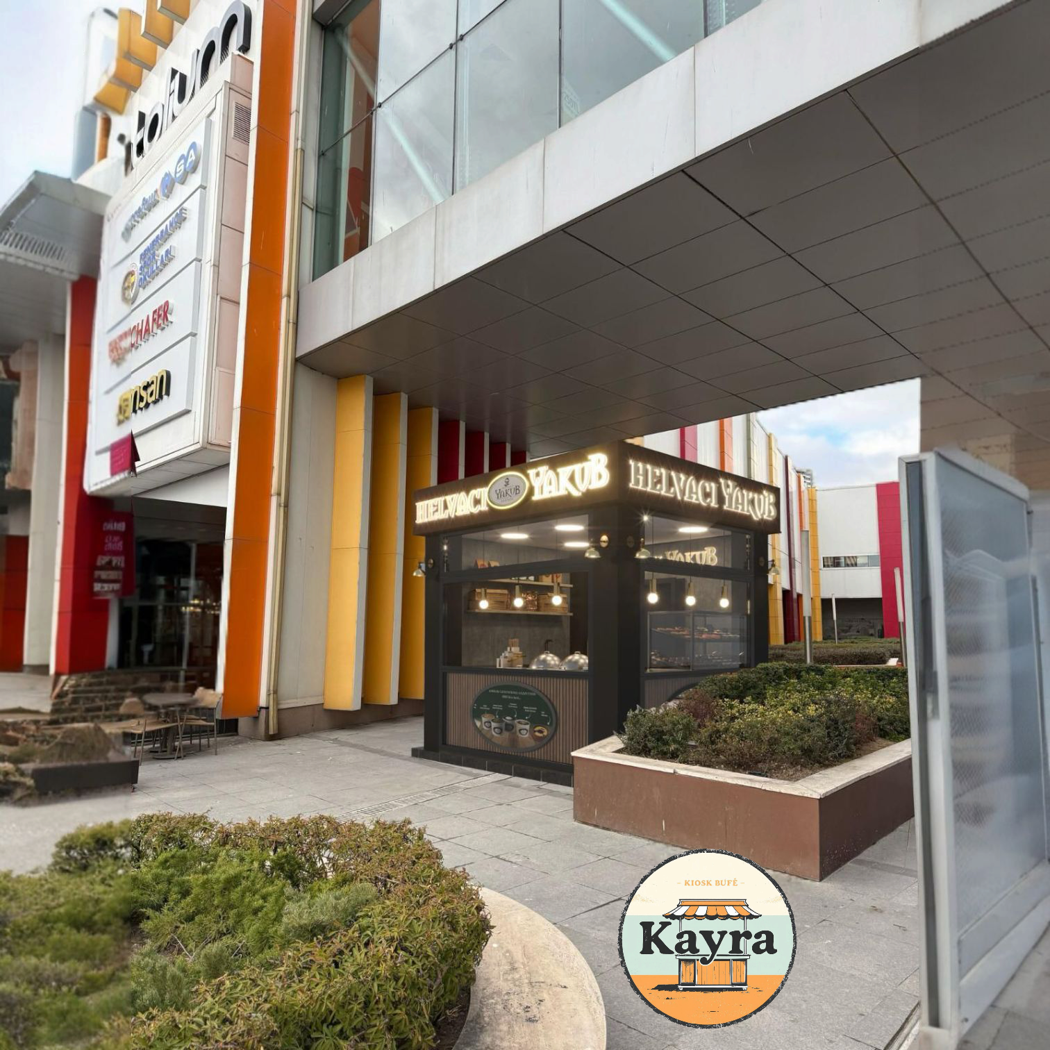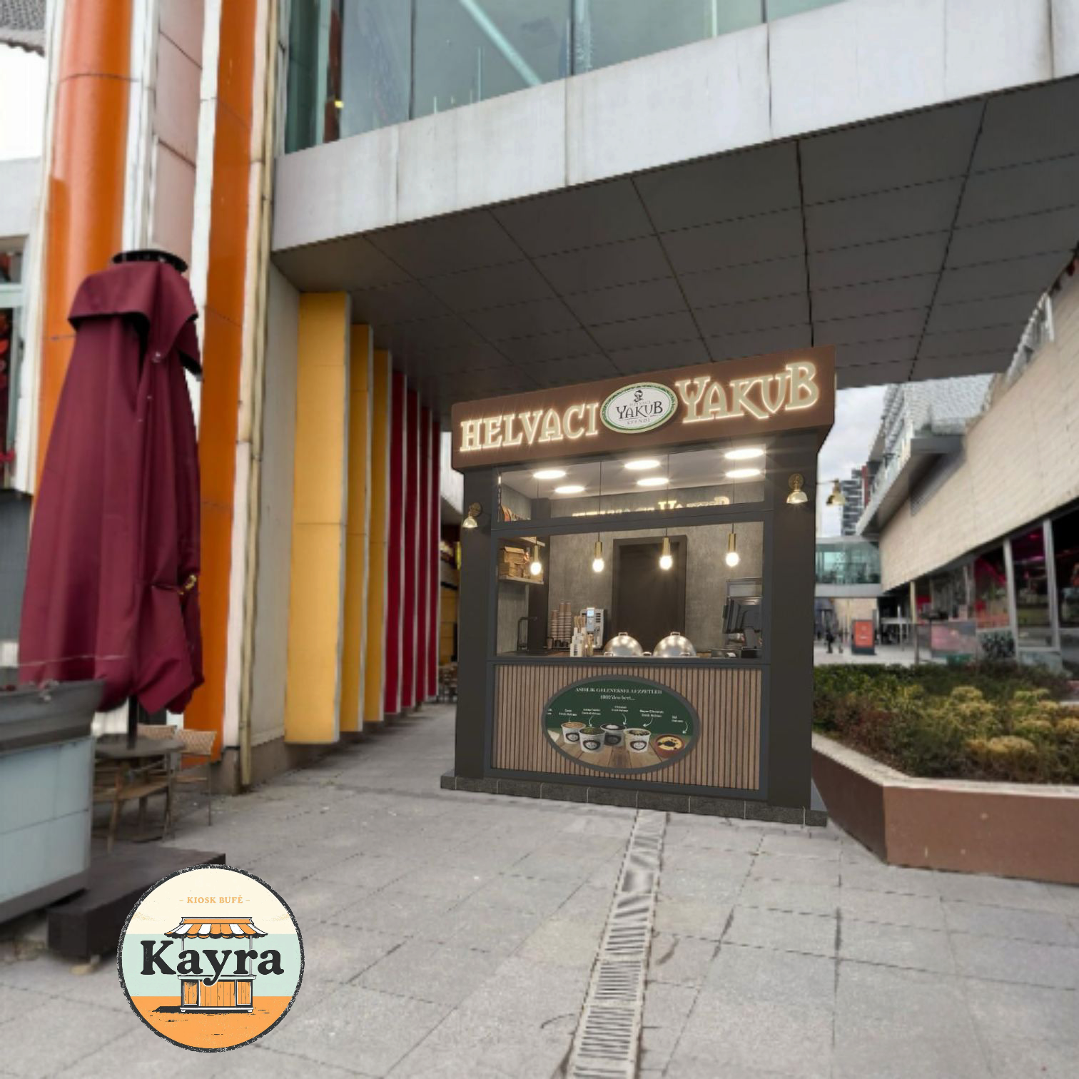 Kiosk büfelerde Sigorta otomatı ve sigorta kutusu 5 adet açma kapama anahtarı, 12 adet topraklı priz,bir televizyon anten hattı.bir data hattı,dört yönlü CAT 6 kamera hattı vardır. Ayrıca kiosk büfelerin saçak çevresinin dört köşesinde aydınlatma için spot armatürü ve Cat 6 kamera hattı vardır
